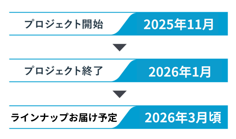 ※本文中に記載させていただいたスケジュールは、あくまでプロジェクト公開時点の予定です。先行販売の性質上、配送遅延のおそれがございます。原則として、配送遅延に伴う先行購入のキャンセルはできませんが、ラインナップ配送予定月から3ヶ月を超えた場合には、希望者に限りキャンセルにて対応させていただきます。