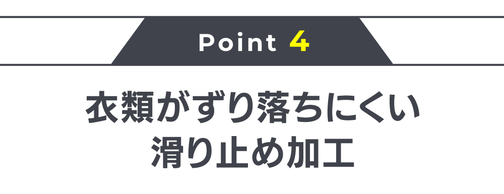 滑り止め加工が施されているため、衣類がずり落ちにくい構造になっています。