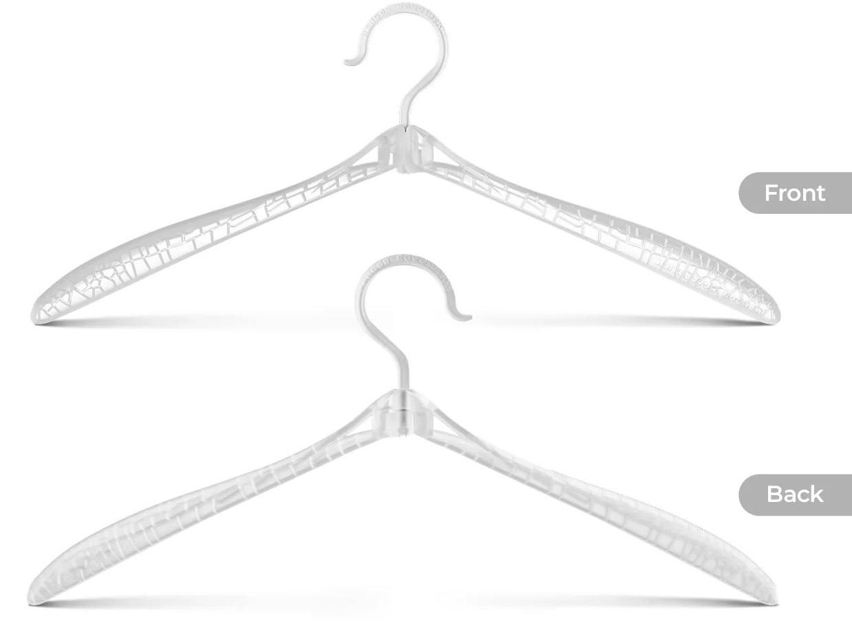 ユリの葉の優雅な形状からインスピレーションを得て、ハンガーのアームの背面を設計。これにより衣類にシワがつきにくくなっています。