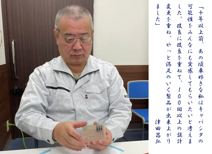 だったら、私の会社で製造販売していこう。それから会社の体制づくりをし、製造に参加してくれる仲間を集め、津田に技術指導を受け、国内で作り上げる体制を整え、TsudaISMカーキャパシタとして商品化したのです。