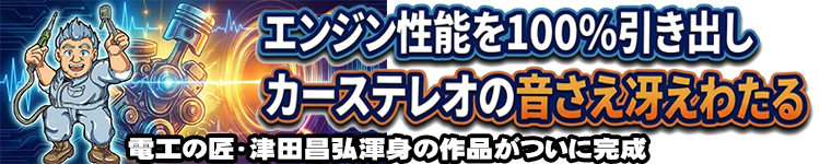 電工の匠・津田昌弘は、はじめから単にコンデンサでバッテリーを補完しておけばいいわけではないはずだと考えました。そして、高速回転のエンジンには小型で反応速度の速いコンデンサを並列に配置し、低回転で走ることの多い日常遣いの自家用車には比較的反応速度は遅くても保持する電力量の多い大きなコンデンサを使ったものを用意すればいいと考え、車種ごとに、そして走り方ごとに違うバージョンを設定していました。