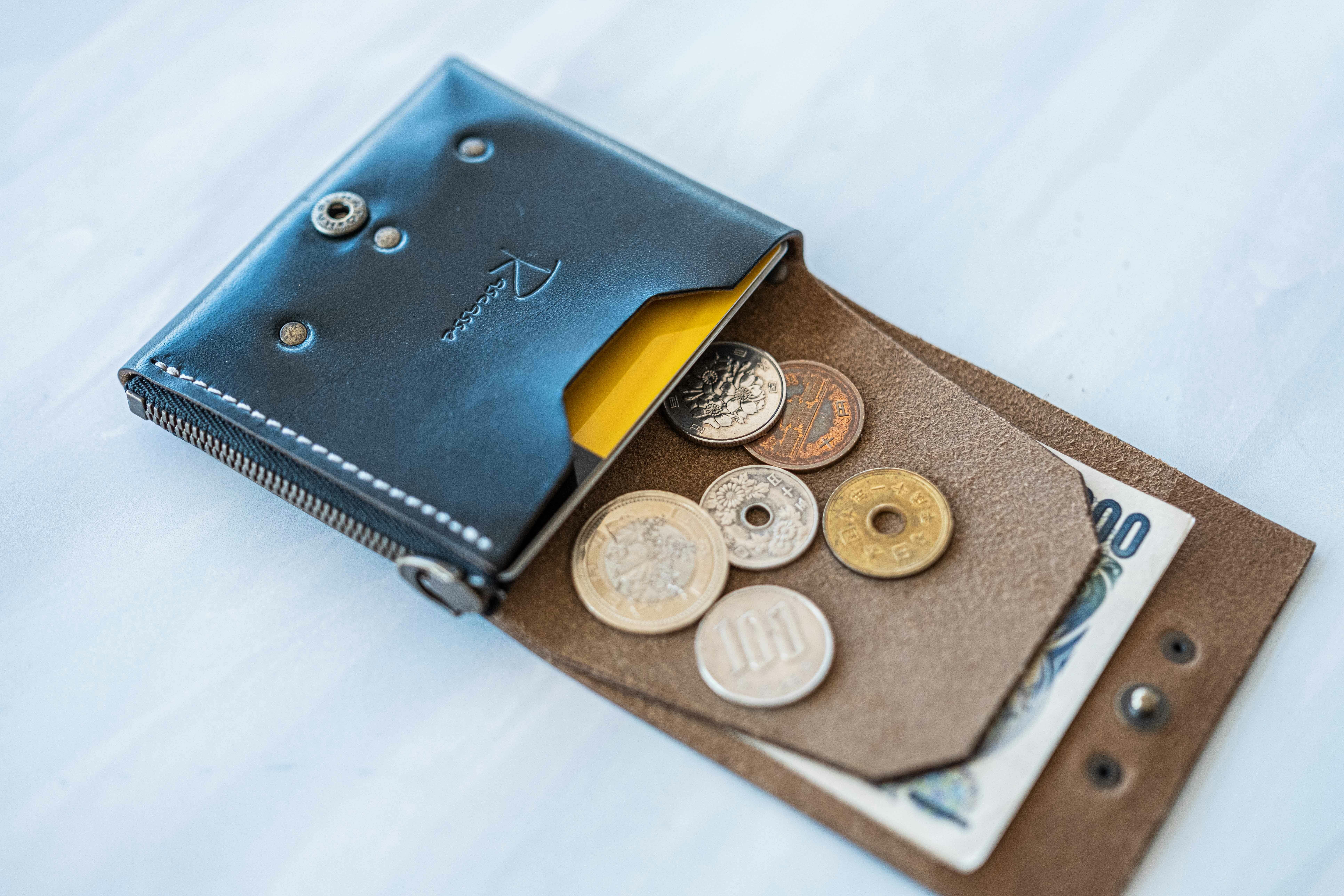 それぞれ20枚以上のお札とコイン、10枚以上のカードを収納でき、コンパクトウォレットでありながら十分な容量を備えています。