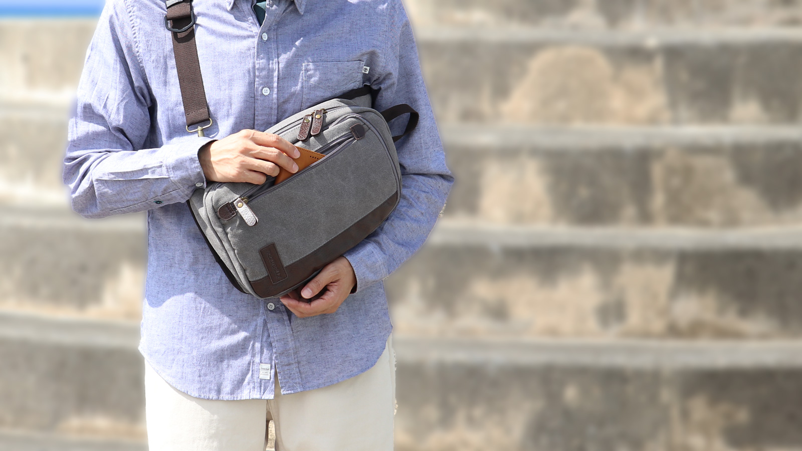 帆布バッグブランド「WOODYBELLY(ウッディベリー)は2007年にスタートしました。バッグ専門店ならではの技術とアイデアを生かしつつ、「より使いやすい」目指し、妥協せずに何度も修正を繰り返し、「4層構造14ポケット整う大容量帆布スリングバッグ」が完成しました。