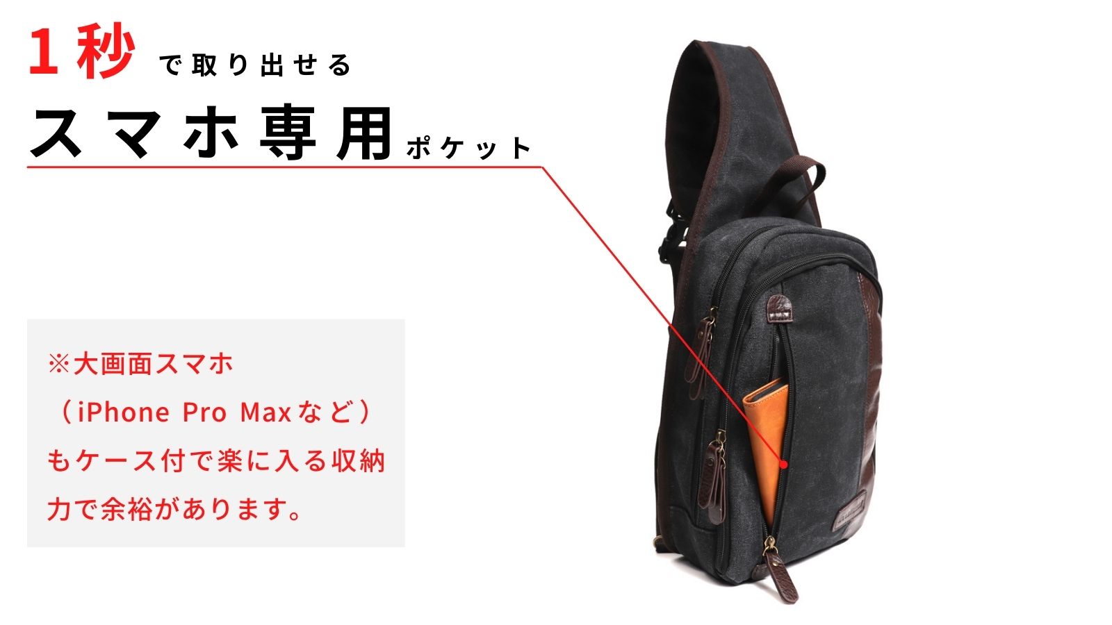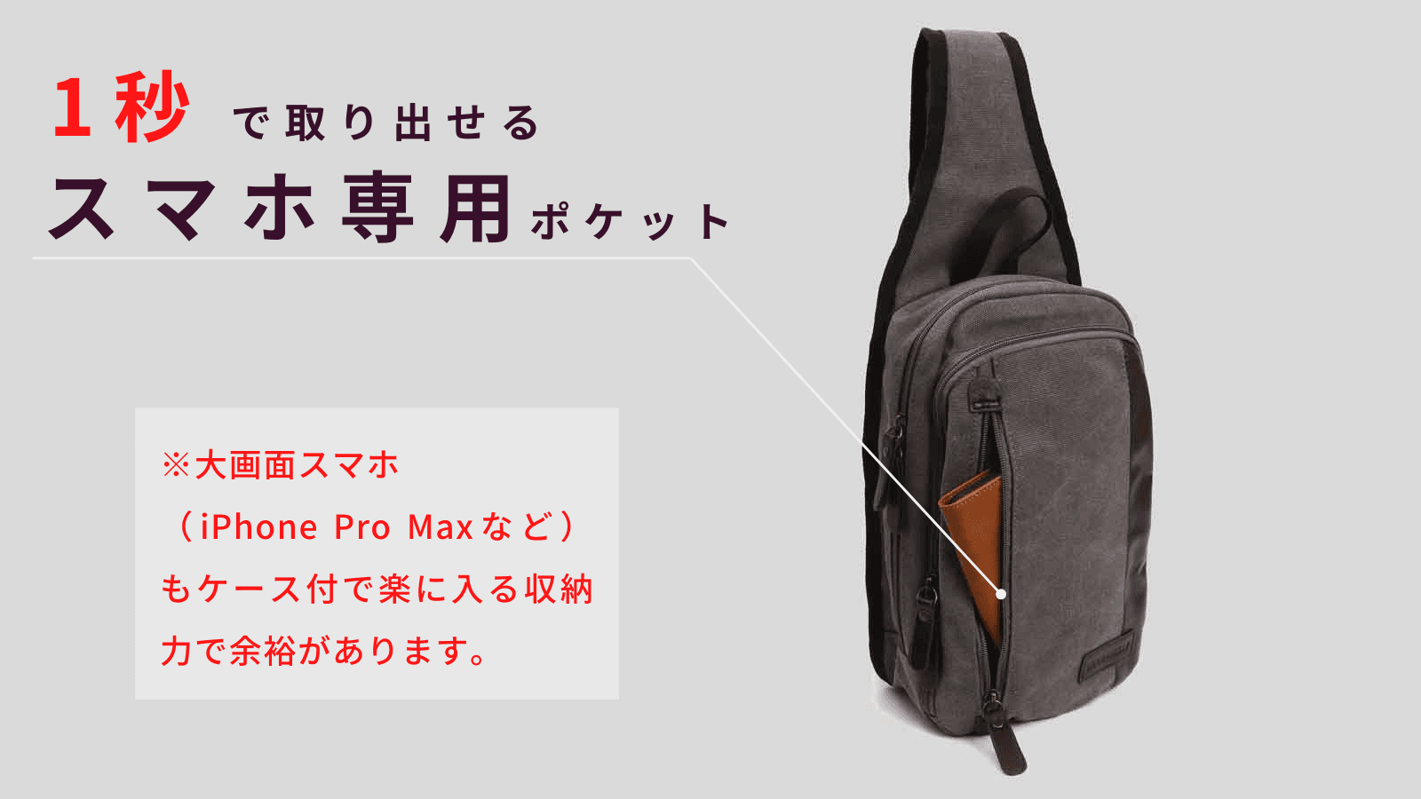 ▼何度も取り出すスマホは専用ポケットに!