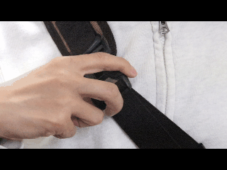 ずれ落ちにいアジャスターベルトを採用。親指を掛けて引っ張るだけ。