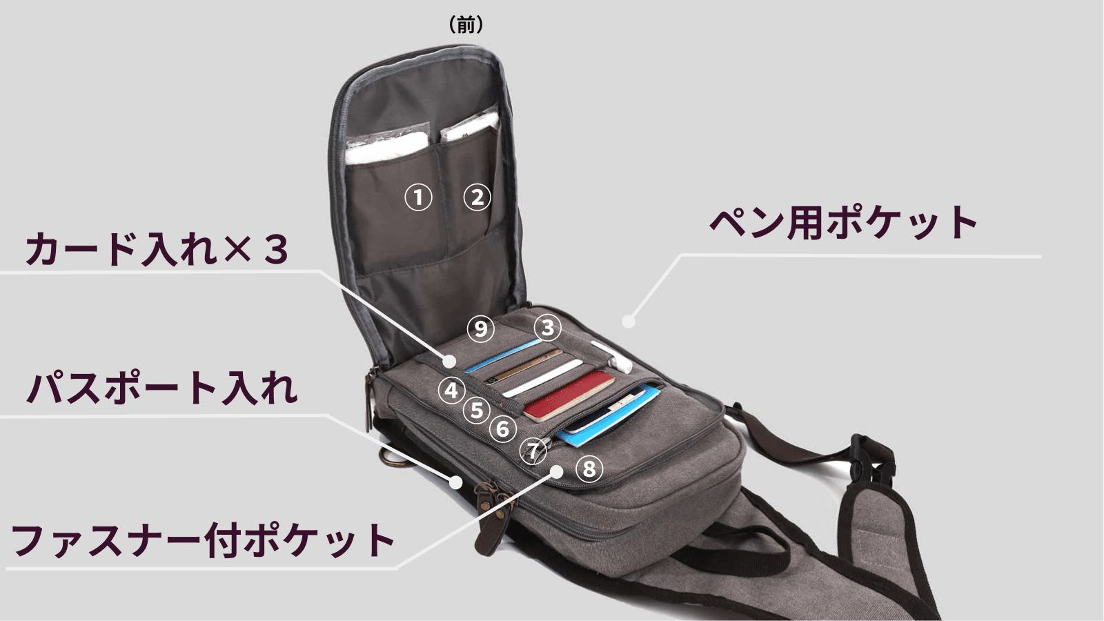 「バッグを前に持ってくると斜め向きになって、ファスナーが端まで開かないから取り出しにくい」
