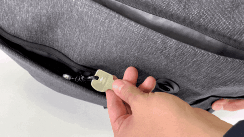 横方向にスライドしないとロックは外れません。真っ直ぐ手前側に引っ張るだけではダメで、コツや方法を知らなければ、開けることができません。スリ対策にもバッチリです。