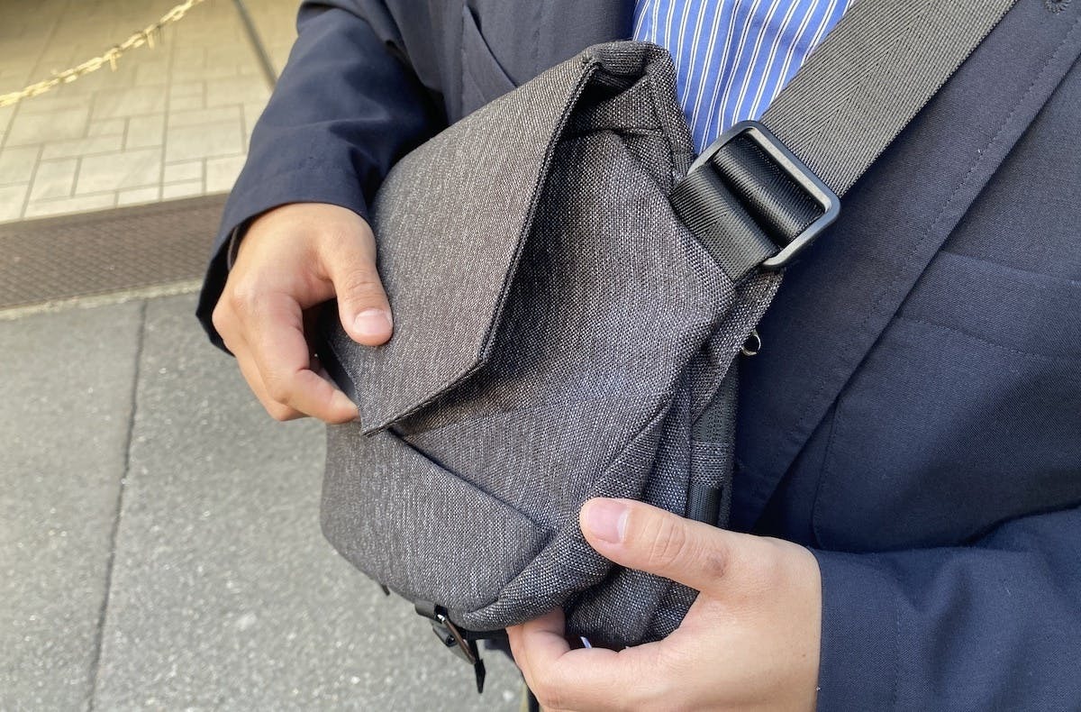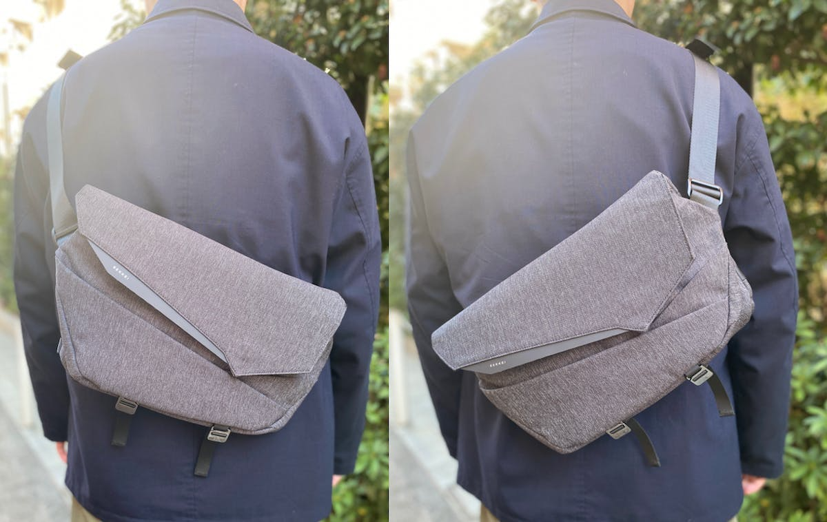 13インチノートPCや一眼カメラなど、サイズ的に少々かさばるアイテムも運べる、容量可変式の「SEKKEI MX-sling」のダークグレーが今回CoSTORYに数量限定で登場。