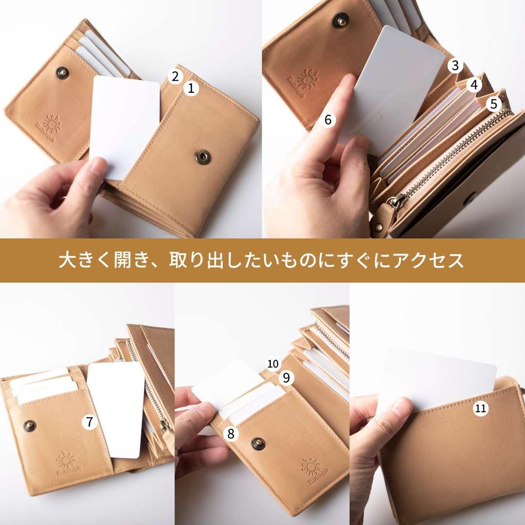 使いやすい仕分け収納でカードもお札も小銭もたっぷり収納。