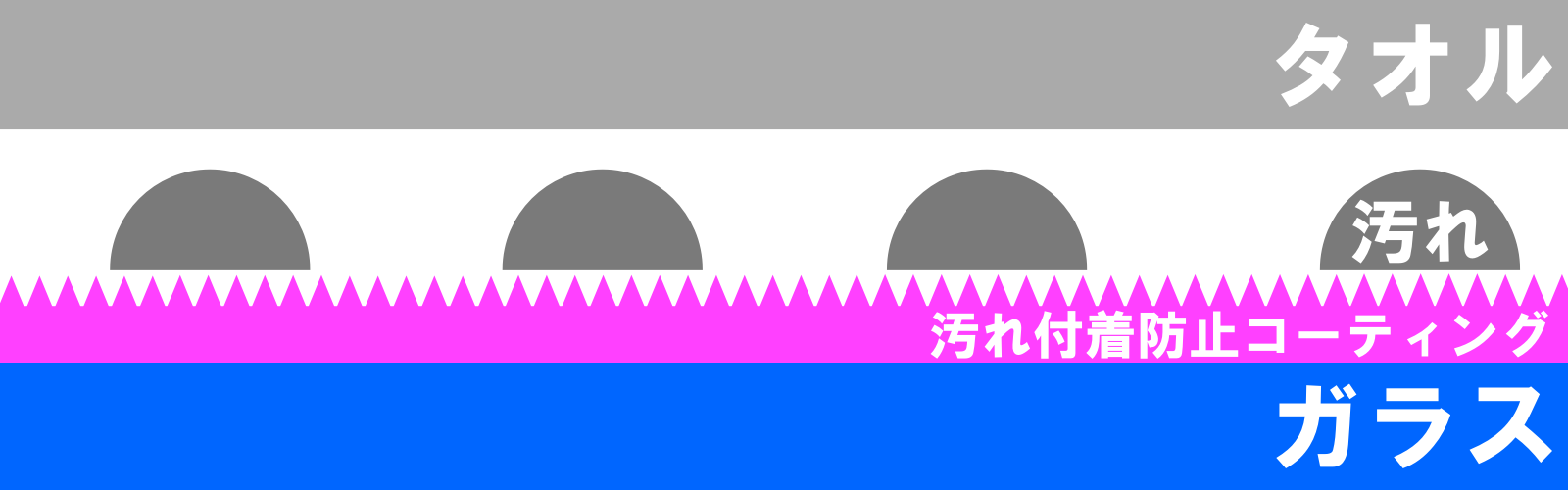汚れが付きにくくなりガラスへの汚れを防止します。