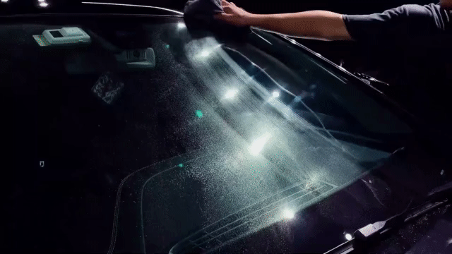 この状態で水でガラスを拭いてしまうと水に含まれる不純物などが汚れとして残ってしまい、下の図のように拭き取っているのに汚れを伸ばしてしまうような状態になってしまいます。