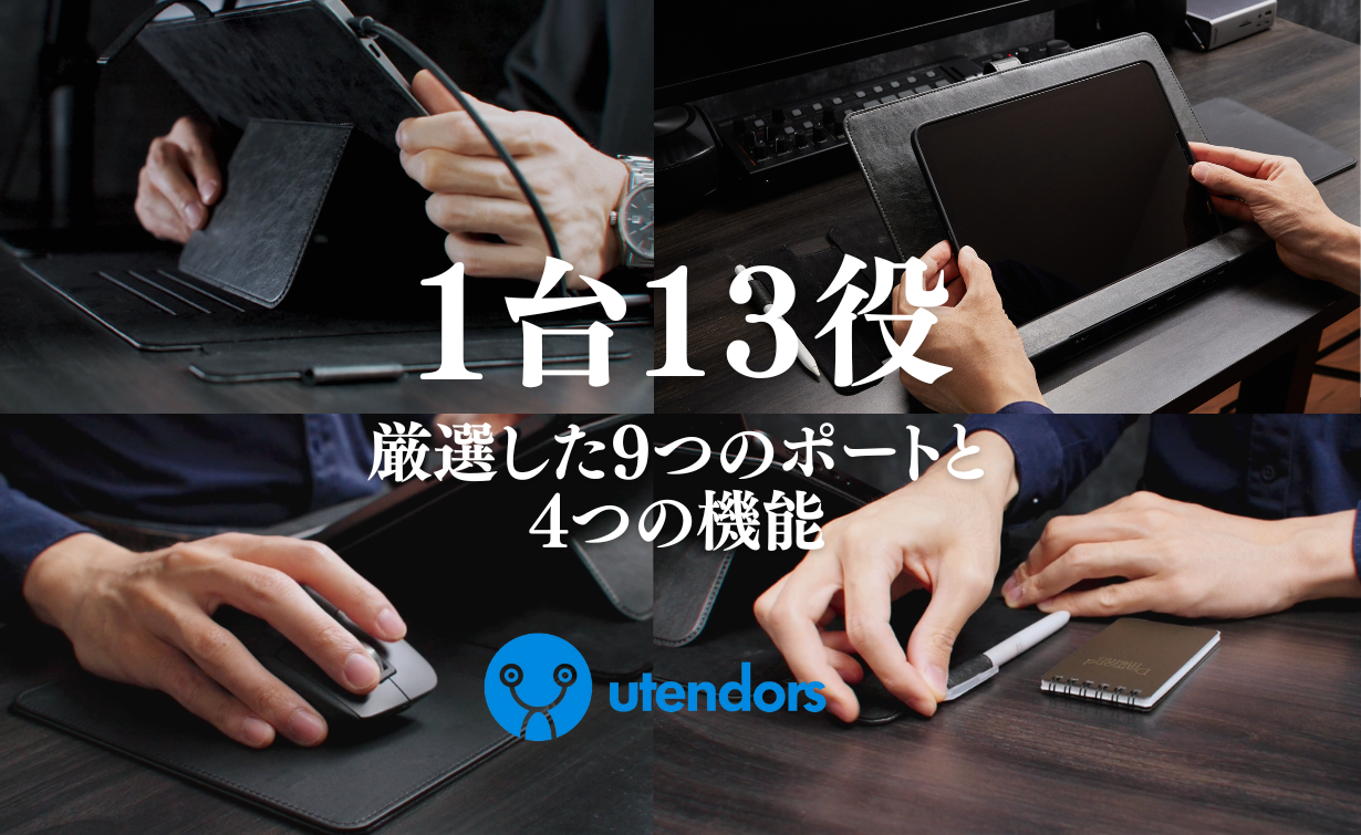 そんな背景から生まれたのが、今回の「utendors スタンドHUB」です。実際に使ってみると、その便利さにすぐ納得しました。画面の位置が自然と上がり姿勢が楽になること、USBやHDMI接続がスムーズに完了すること。作業環境が整うだけで、仕事の効率も、気持ちも大きく変わると実感しました。
