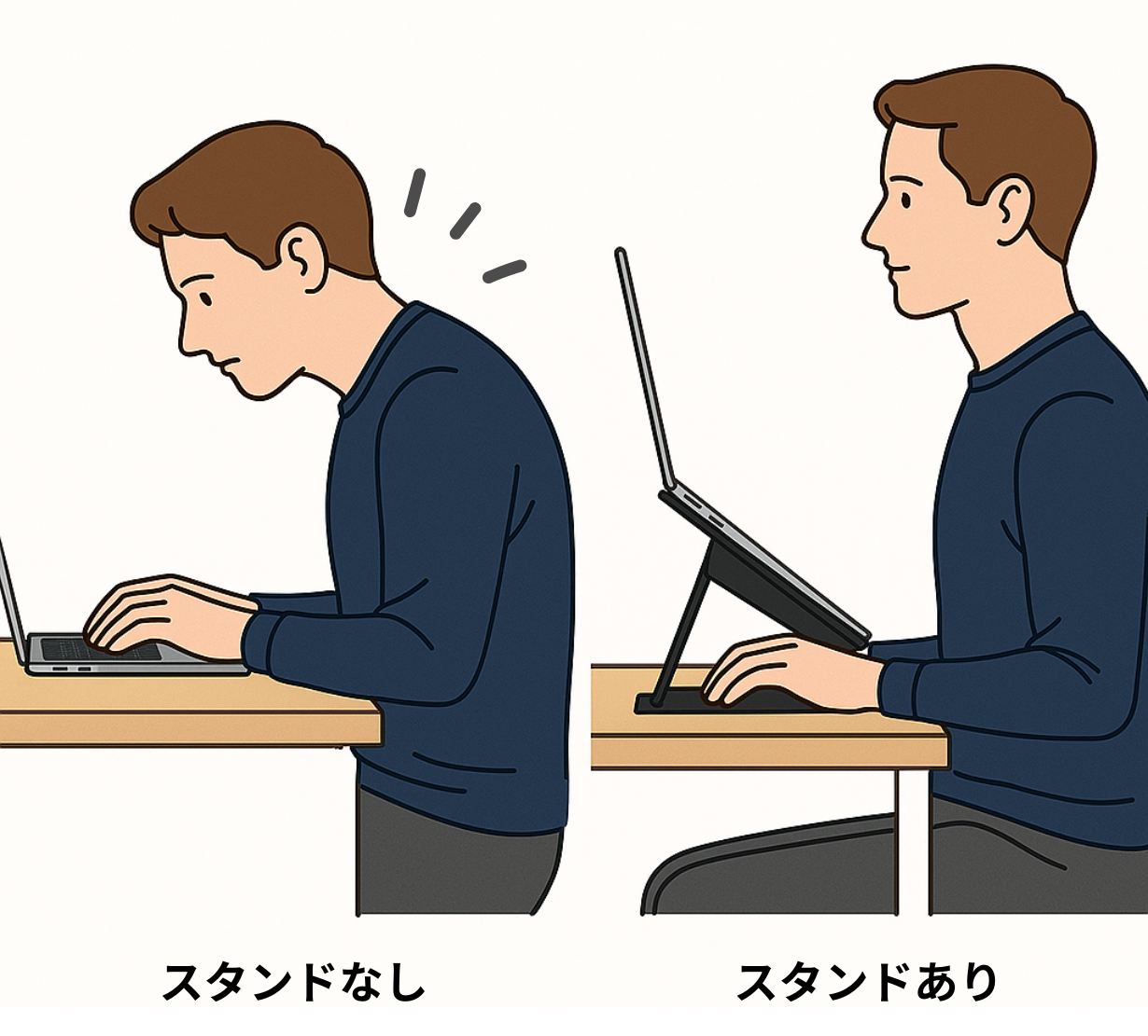 画面の位置を上げることによって、視線が上がり自然な姿勢に。
