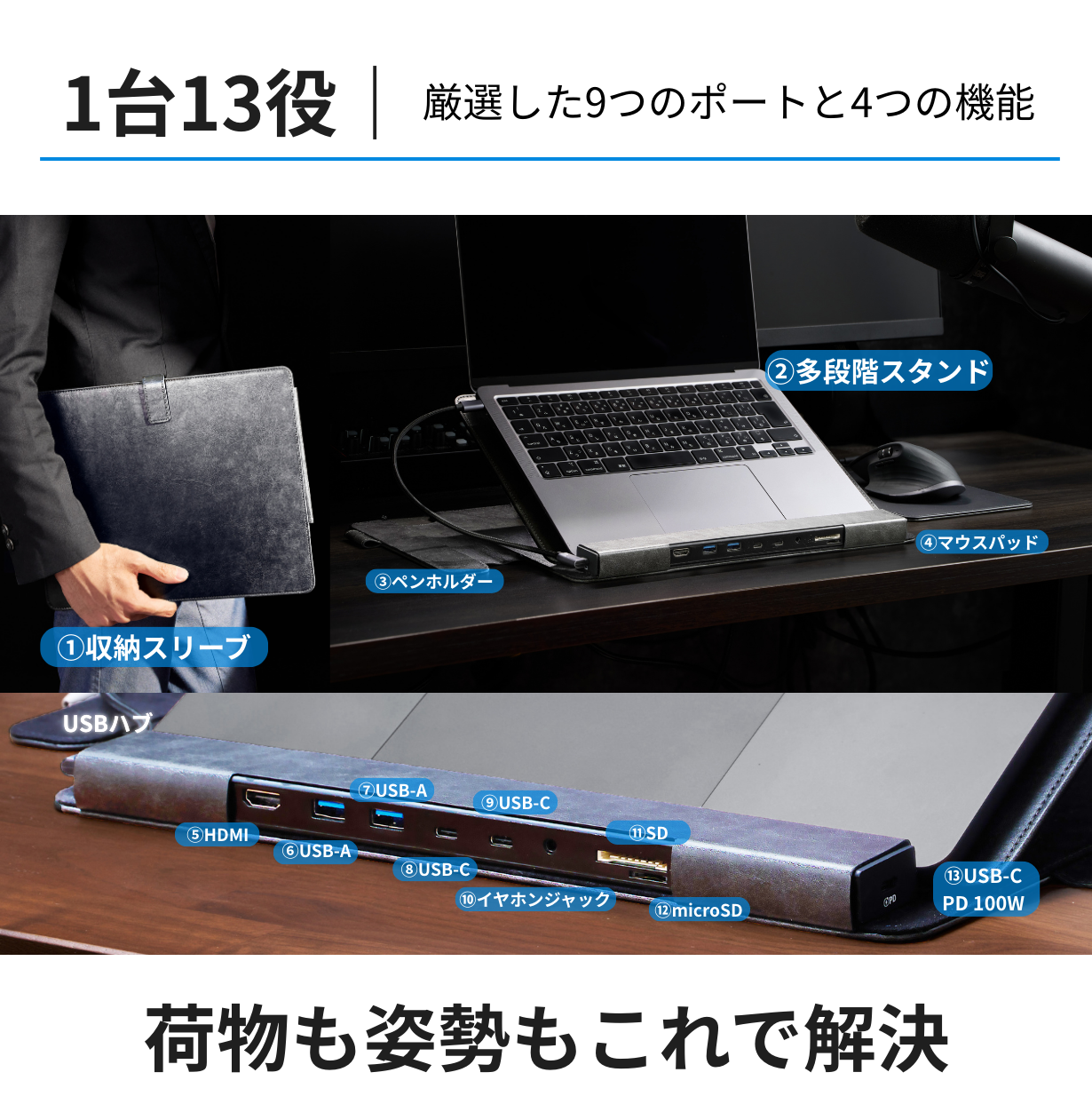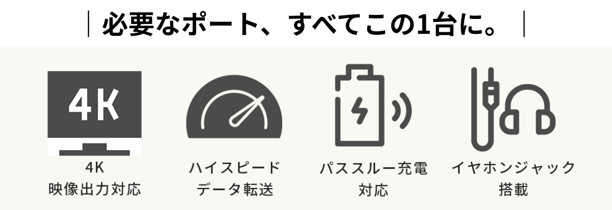 従来のスタンドやHUBは「荷物が増える」「ポートが足りない」といった悩みがつきものでした。