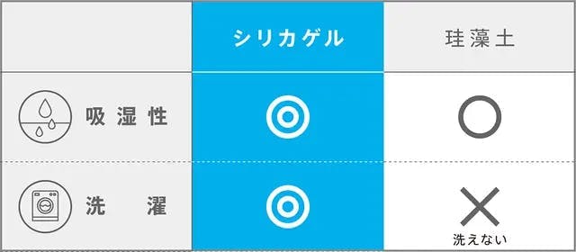 - ・シリカゲル採用: 珪藻土以上の吸湿性能で、続けて使用しても水が表面に戻りにくい