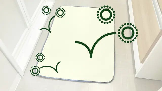 さらには【 シルフィーノ 】はオモテとウラ、両方の面を使うことができます。使った後に裏返すと、おろしたてのようなサラサラに。発泡ウレタンに珪藻土を混ぜるタイプとは違い、ゴムの臭いはありません。