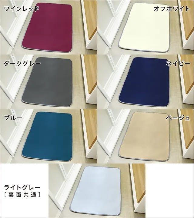 ※試作品で撮影カラーは6パターン。(片面は共通でライトグレーです)浴室に合わせやすいカラフルな組み合わせをご用意しました。
