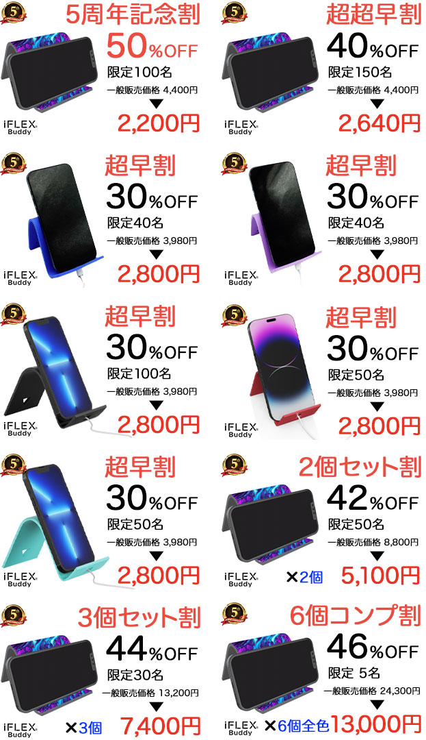 【5周年記念感謝祭】スマホスタンドの常識を覆す!万能マルチスタンド!1枚で無限の使い方『iFLEX Buddy』