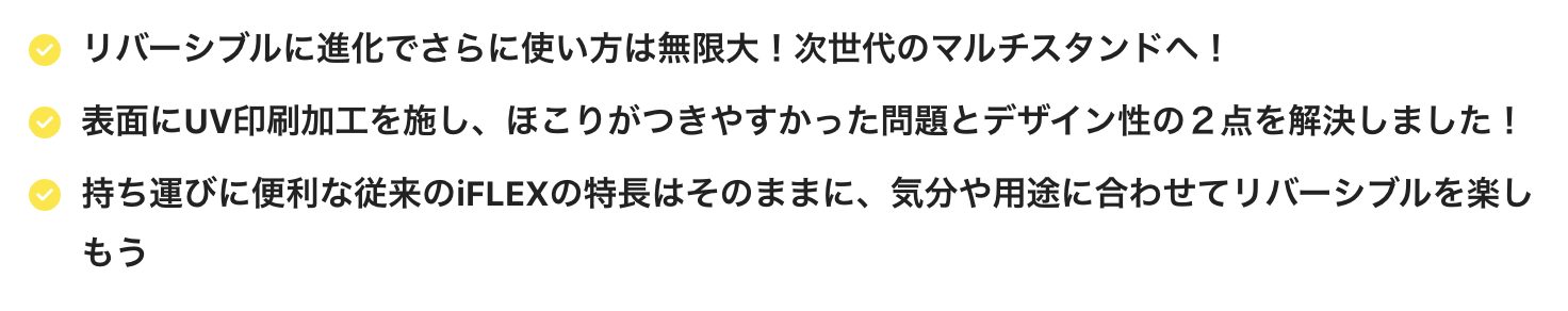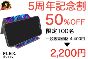 ちょうど1年前に皆様の声から、『iFLEX Buddy』が新登場し、前回叶えられなかった、「表面にほこりがつきやすい」と、「もう少しデザインが欲しい」、iFLEX Buddyブラックを「もっと黒くして欲しい」のご要望にお応えし、商品開発をしました!