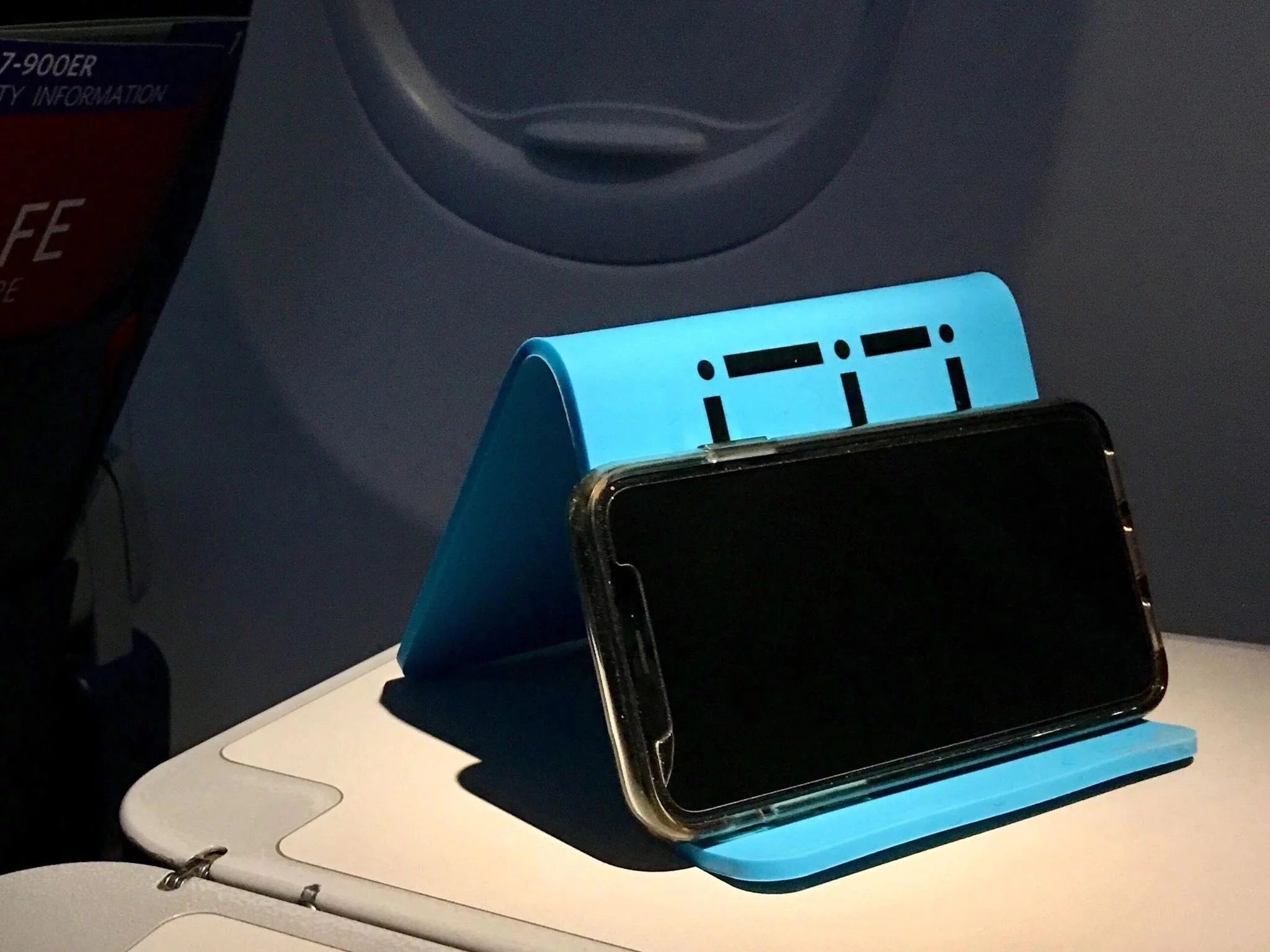 A. 基本的にどの航空会社のものにも対応しています。創業者が今まで数多く旅行をしてきた中で使えなかったケースはありませんが、非常口付近の席の場合前に座席がないことがあるので、その場合はテーブルにおいてご使用ください。
