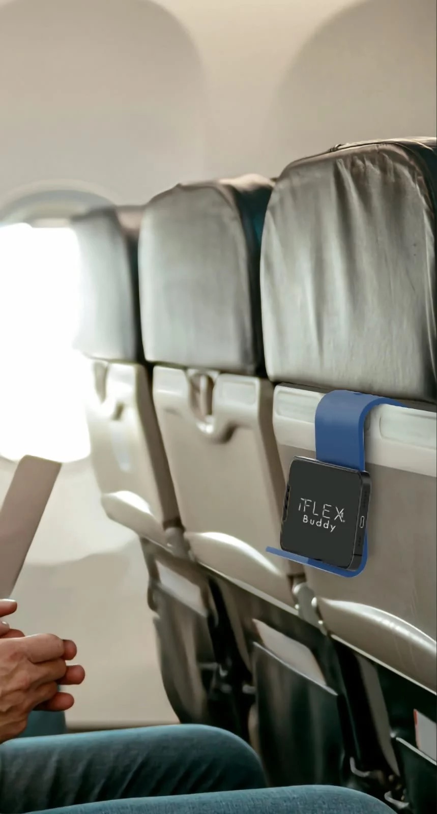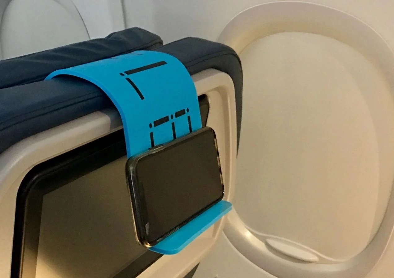 そんなある日、骨折した腕や足の固定に使用するシリコン製シートを飛行機内に持ちこみ、座席にひっかけてスマホを置いてみたところ、ちょうど座席のスクリーンと同じ高さに固定でき、快適に過ごせたことがヒントとなりました。