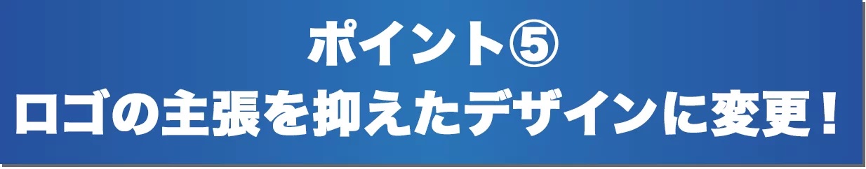 ロゴも旧商品と比べ、小さく目立たない加工とし、改善を図りました。