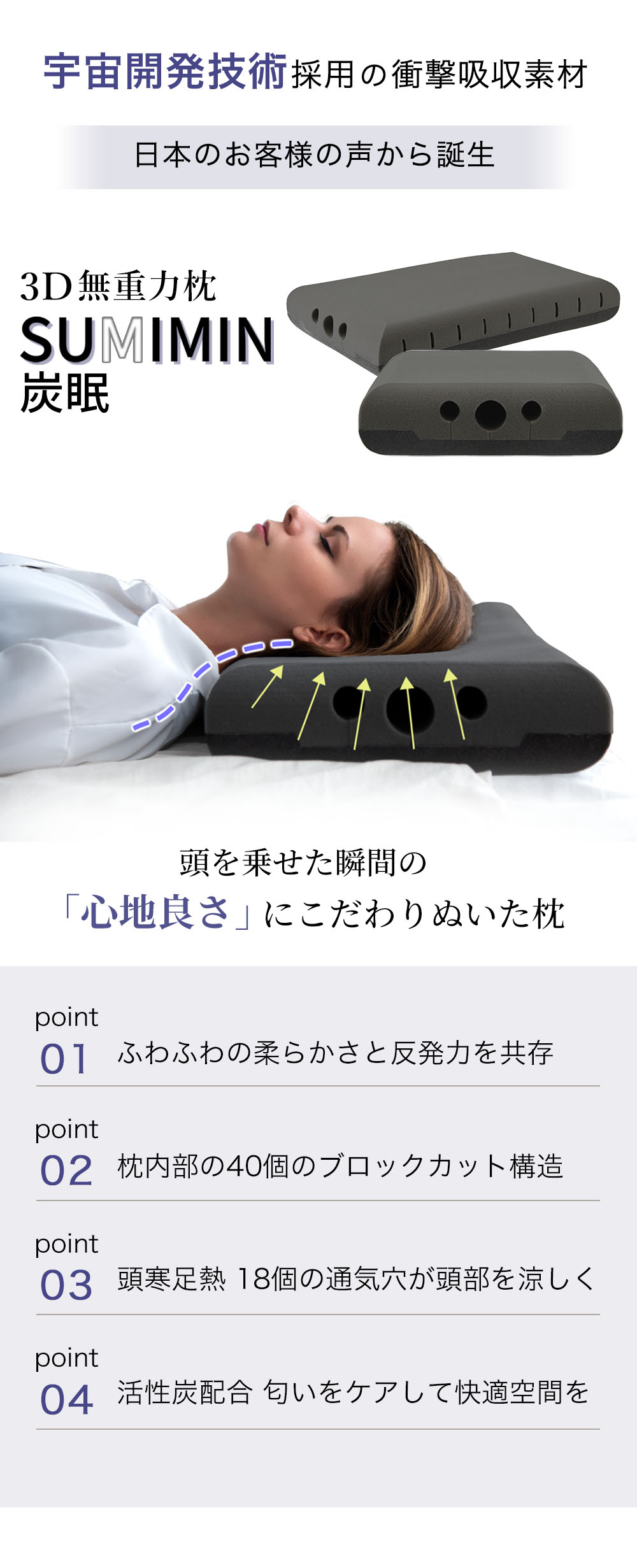 NASA開発の衝撃吸収素材に活性炭を配合! 日本×台湾、共同開発の3D無重力枕 炭眠スミミン