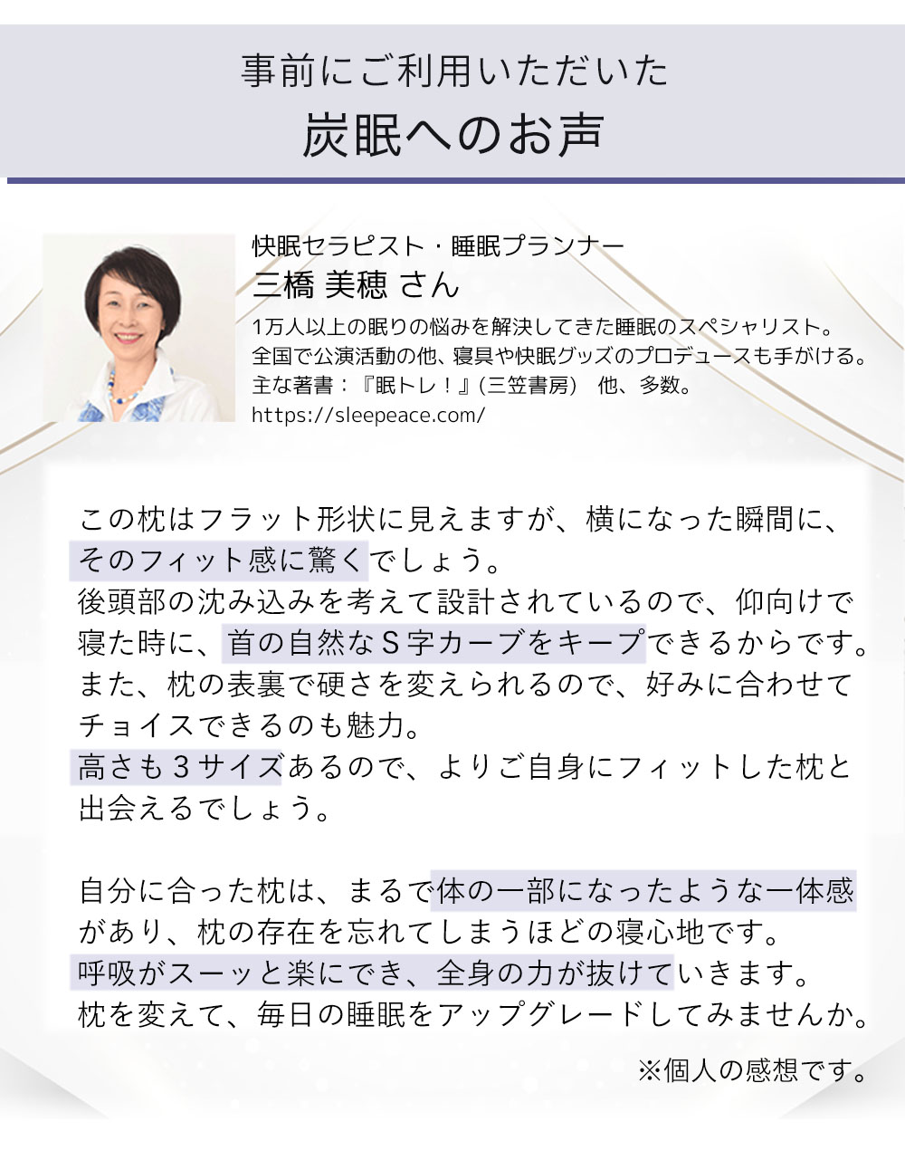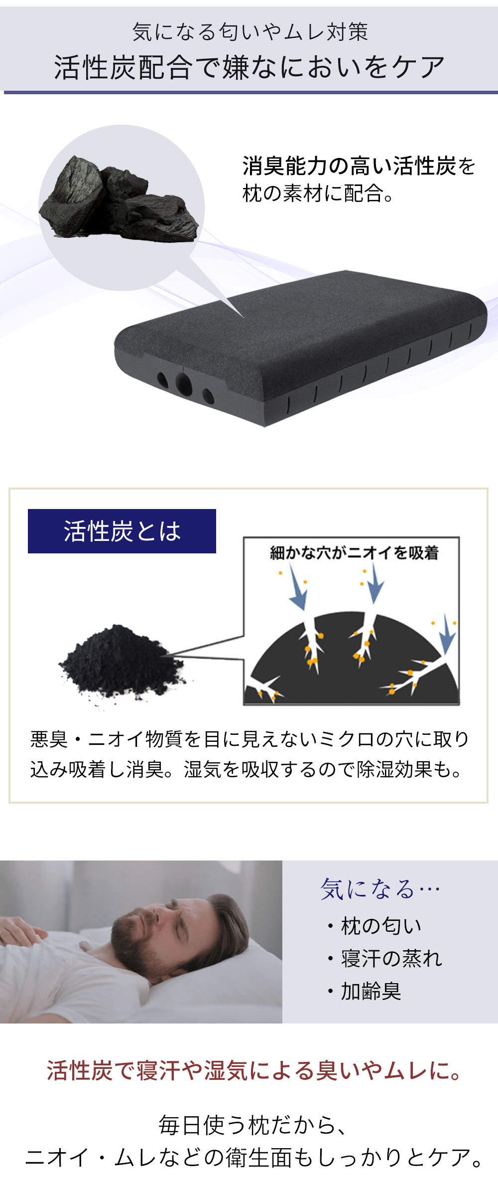 (※炭眠の消臭能力は枕に配合された活性炭の効果によるものです。)