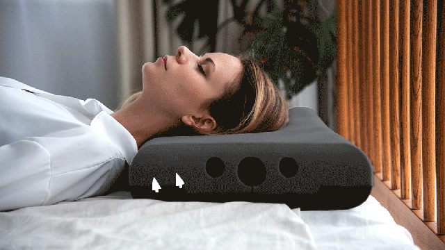 さらにサイド面にも9つもの通気穴がデザイン。枕の中の熱と湿気を徹底的に逃します。