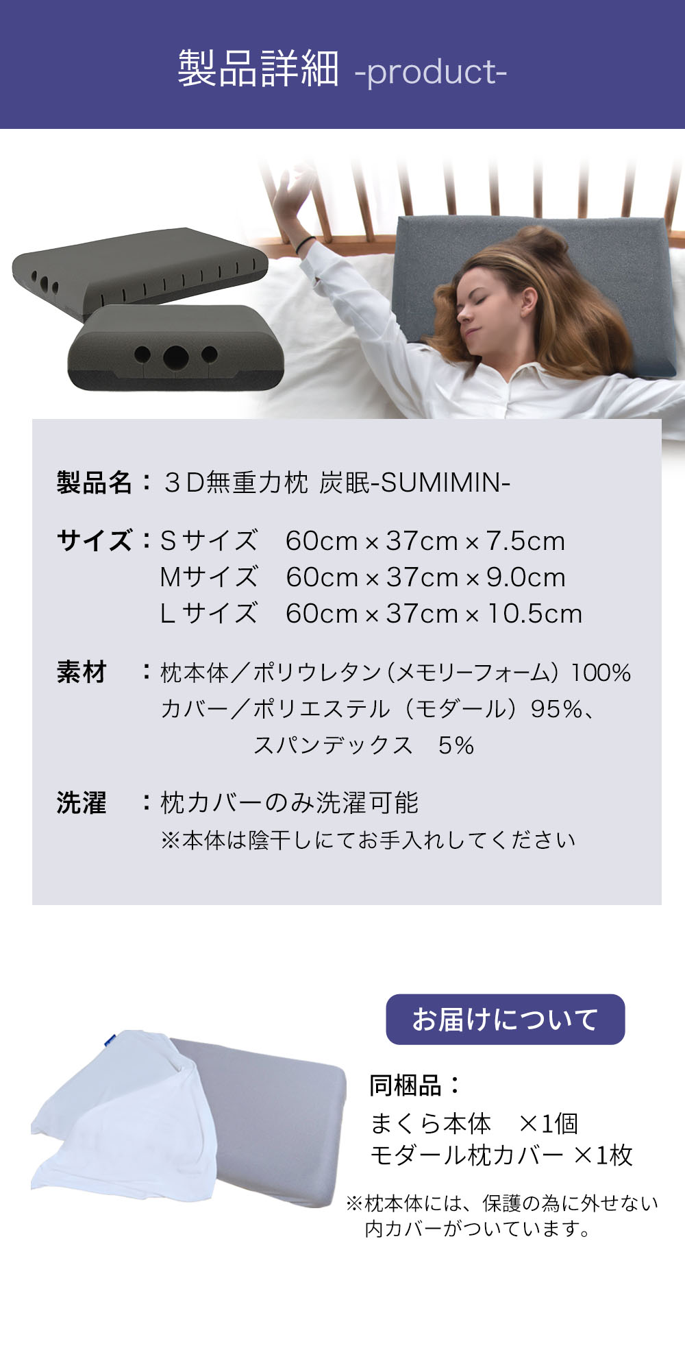 炭眠-スミミン-は、第一弾ゼログラビティピローの完成から、日本正規販売店であるウェザリー・ジャパン株式会社と、台湾GUTNAP社において、度重なる開発会議を行なった上、「枕に頭をおいた時の心地よさ」に焦点を当てて開発されました。