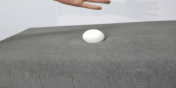 卵が押しつけられても、枕内部のブロックが他方向に圧力を分散することで、枕に乗るものを優しく包み込むため卵が割れません。