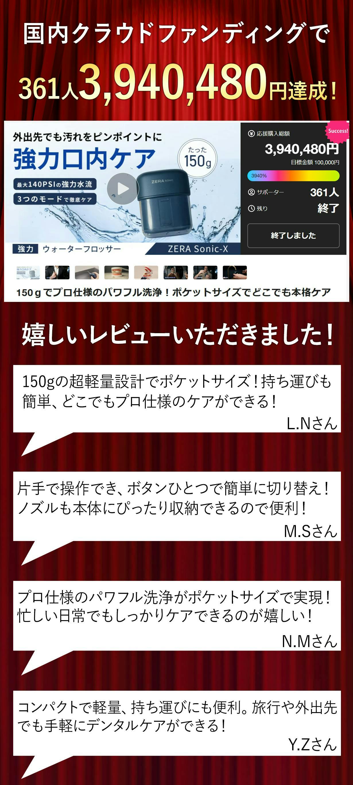 150gだけどパワフルに歯間洗浄!ポケットサイズでどこでも本格ケアできるZERA Sonic-X