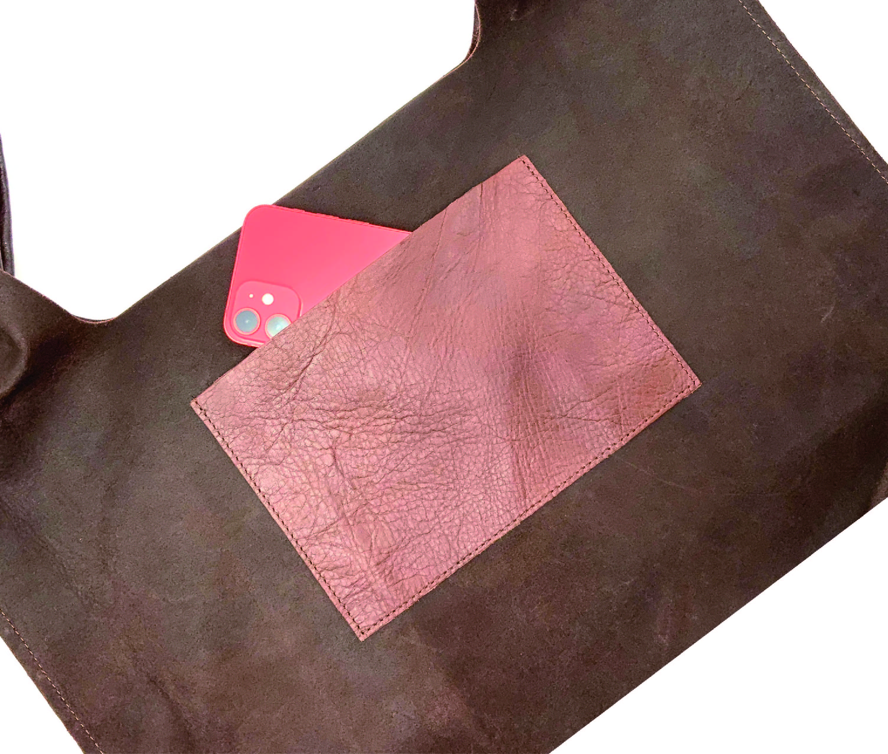 シンプルでも少し気の利くバッグで在りたいと思っています。スマホや鍵が迷子にならないように、ポケットを貼り付けました。