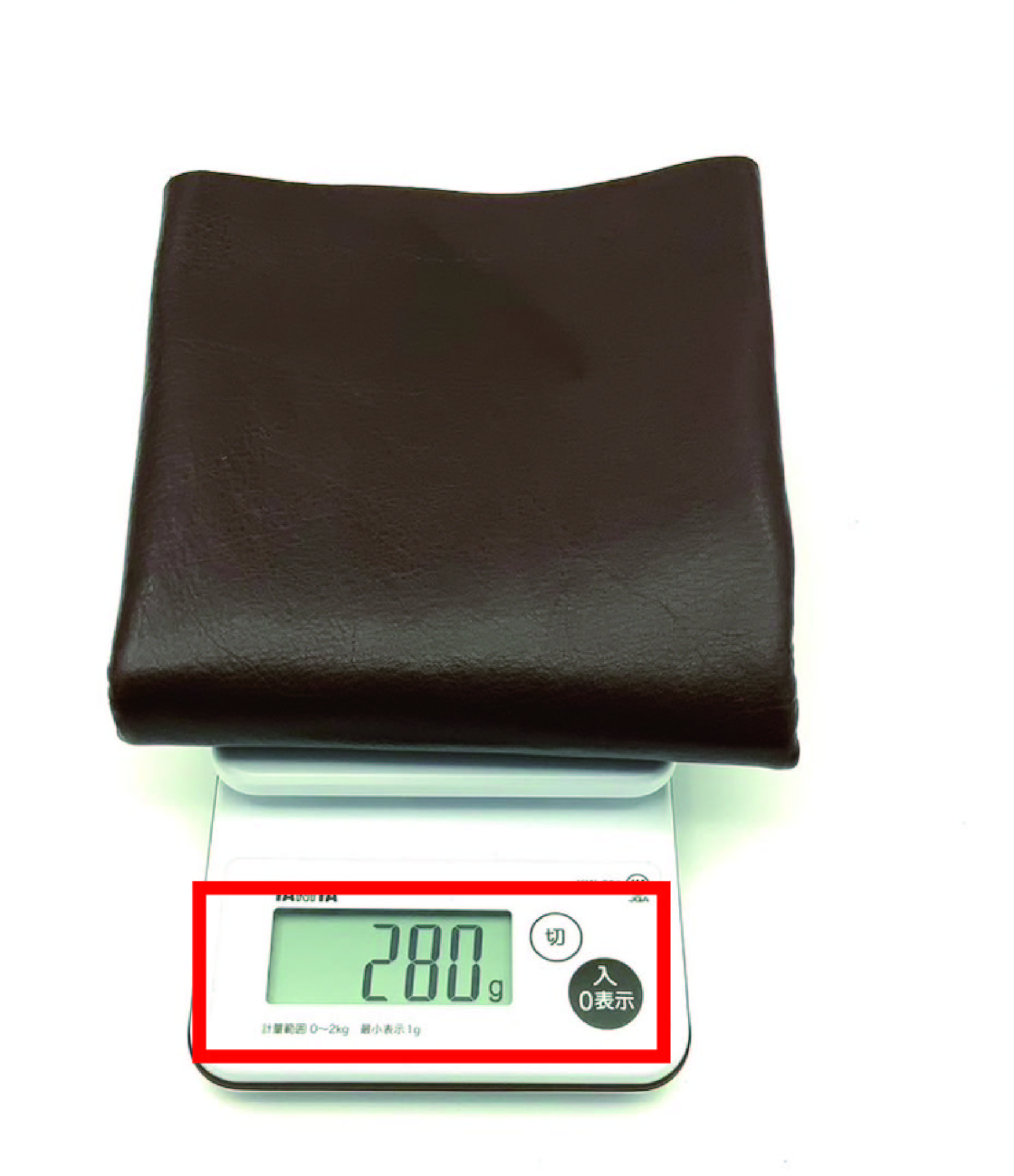 本革は重いイメージがあるかもしれませんが、『本革マルチバッグ』は約300gと嬉しい軽さです。裏地が必要ない加工により、軽量に仕上がっています。(革の厚みは均一ではないため、すべて同じ重さではありません。)