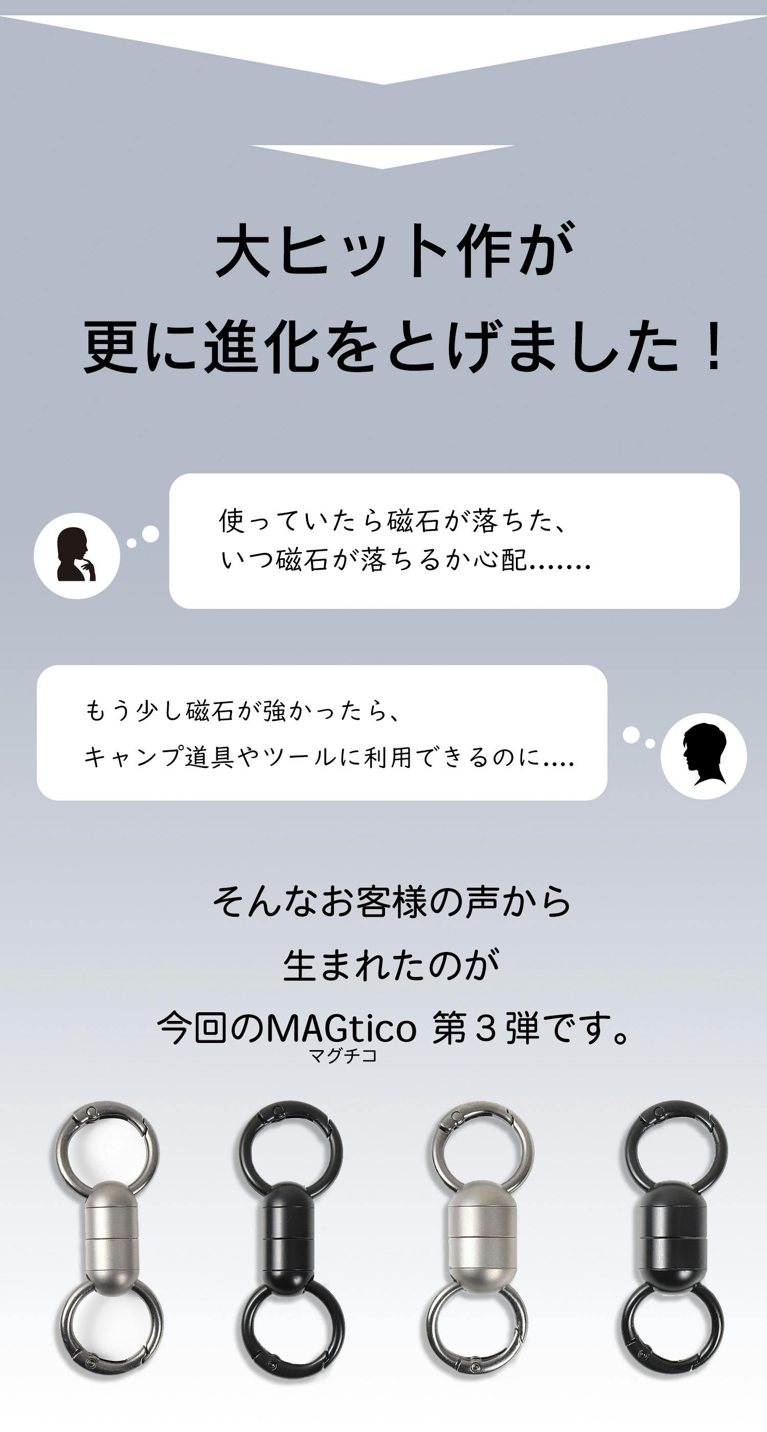 今回は、お客様アンケートで特に多かった「磁力の強化」「サイズバリエーションの追加」「デザイン性の向上」といった要望に応えることができました。