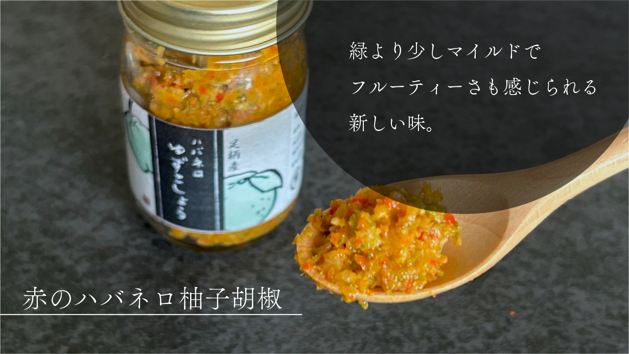 赤いハバネロの柚子胡椒は、緑より少しマイルドでフルーティーさも感じられる新しい味です。