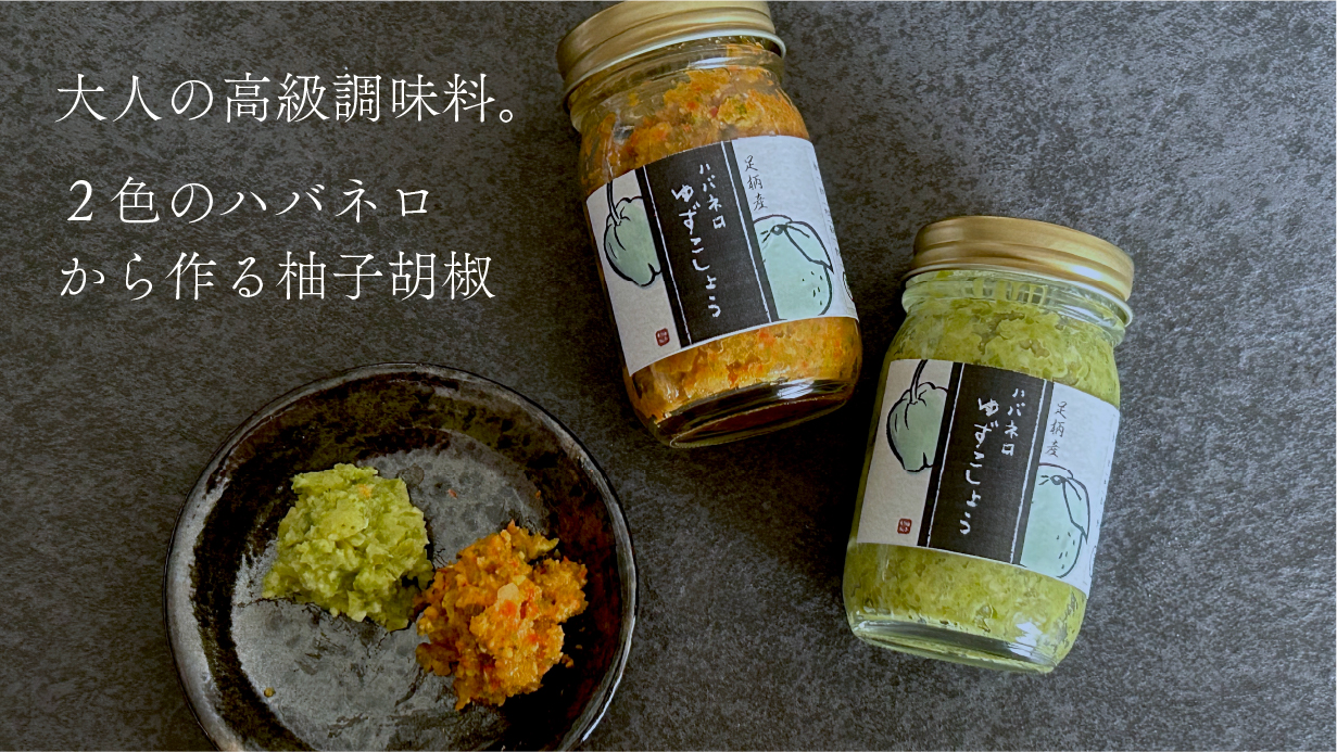 柚子胡椒は緑が一般的ですが、赤と緑のハバネロを使用し、2種類セットで味の違いを楽しめる商品です。