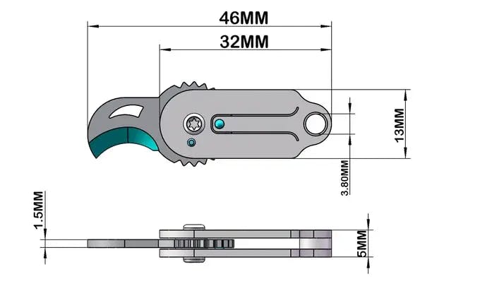 重さはわずか8g、開いたときの長さはわずか46mmの ScytheBlade は、スリムで超軽量なため、ポケットやキーホルダーにぴったり収まり、全く重さを感じさせません。