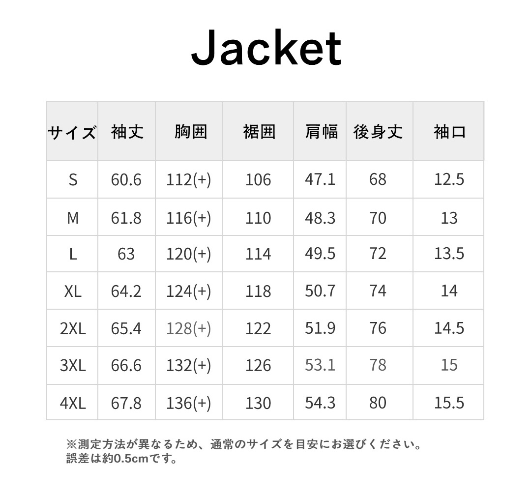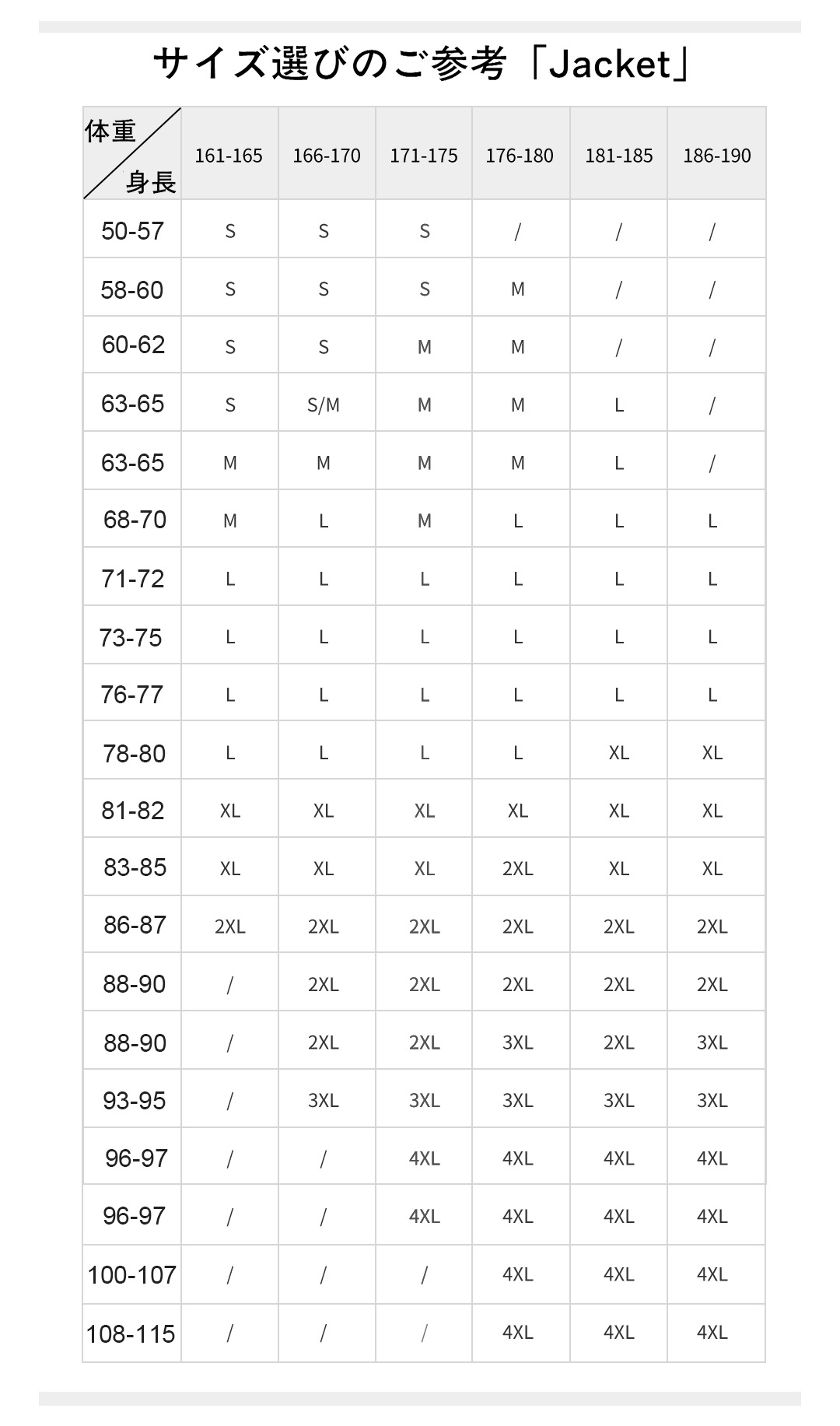 サイズ展開:「Jacket」S/M/L/XL/2XL/3XL/4XL