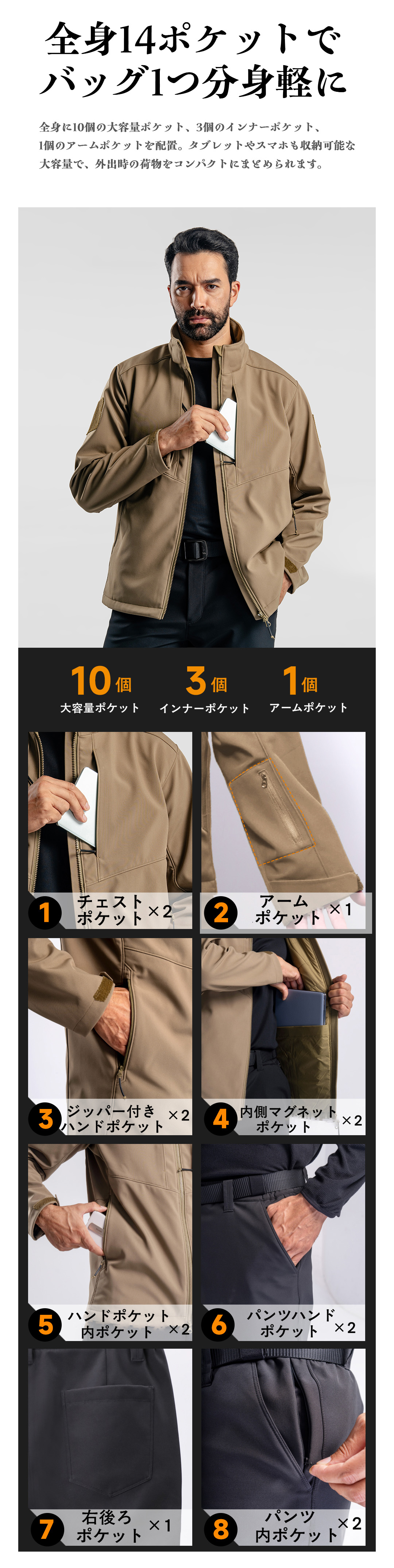 ■ バッグいらずの収納力 ― 全身14ポケット搭載