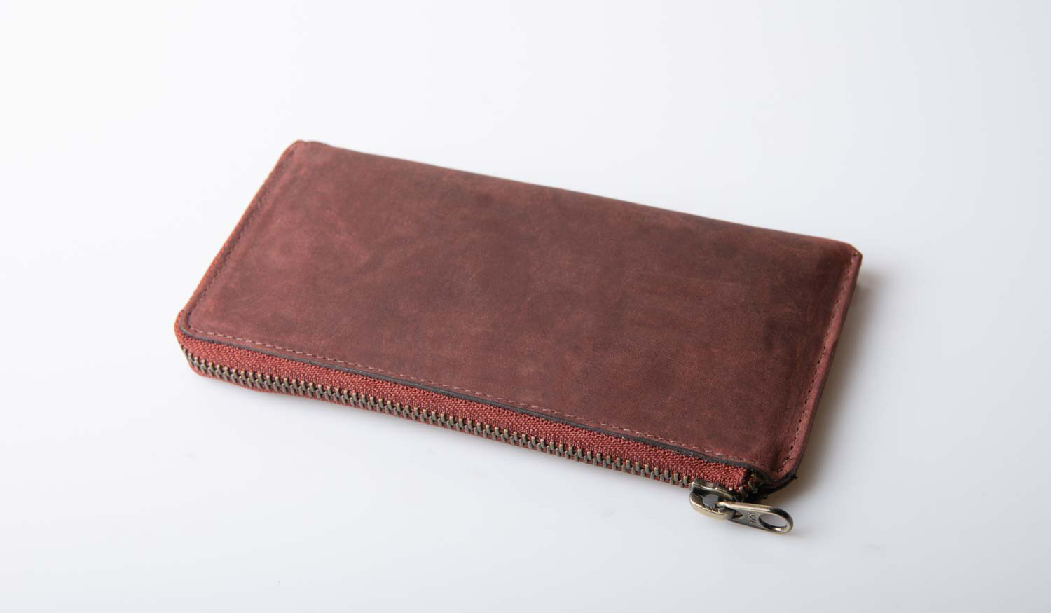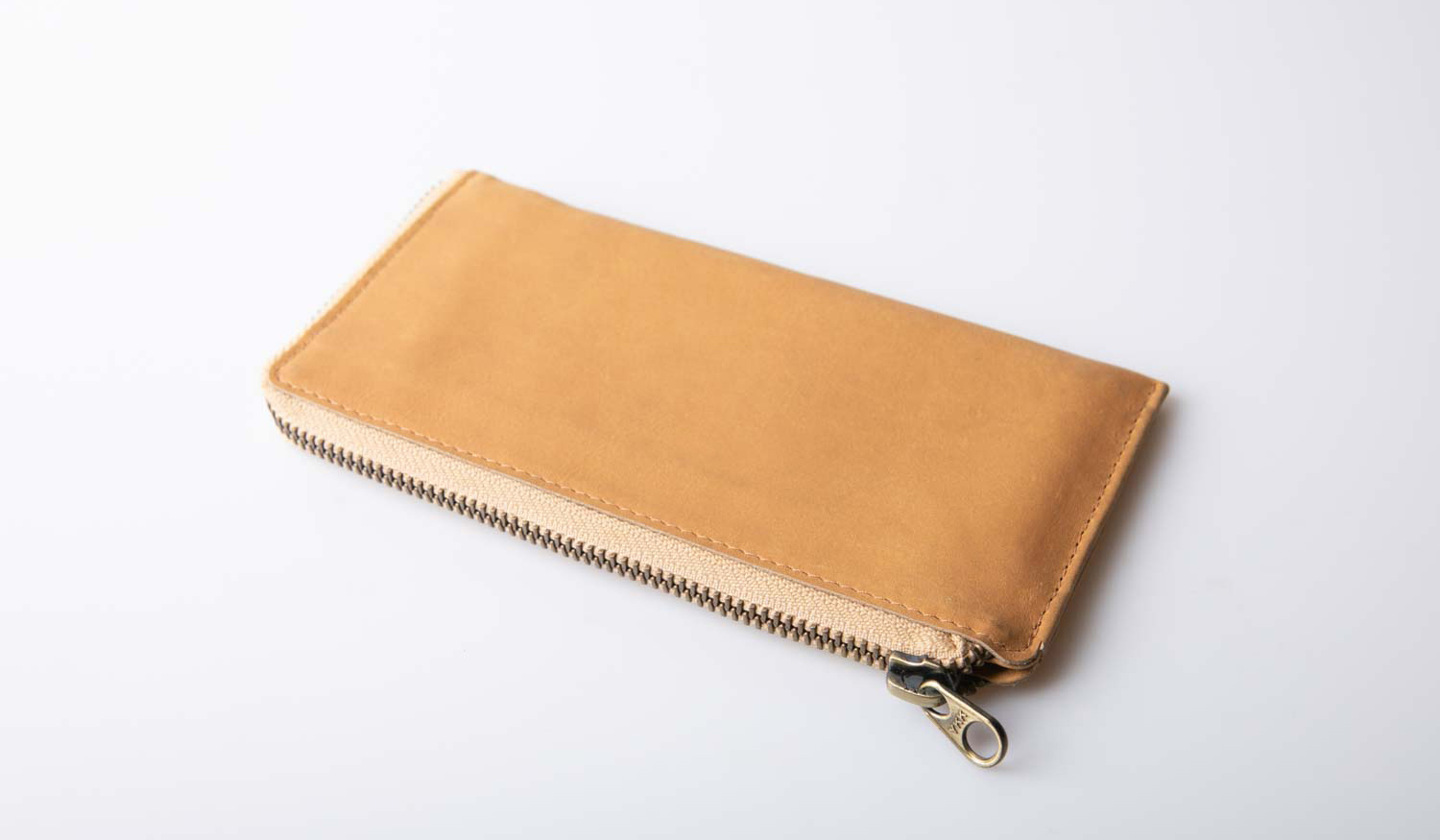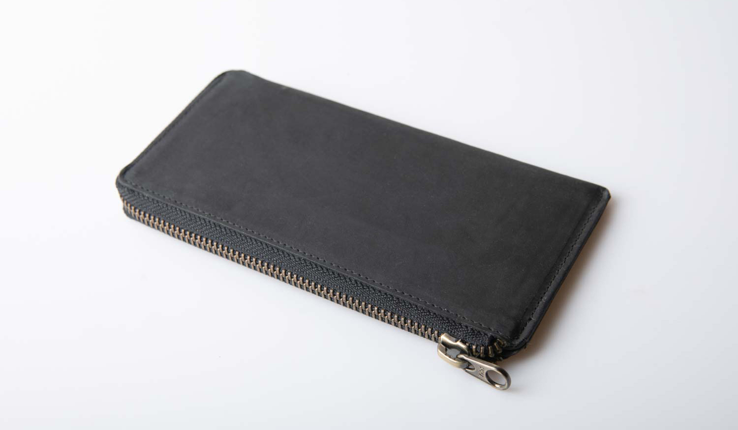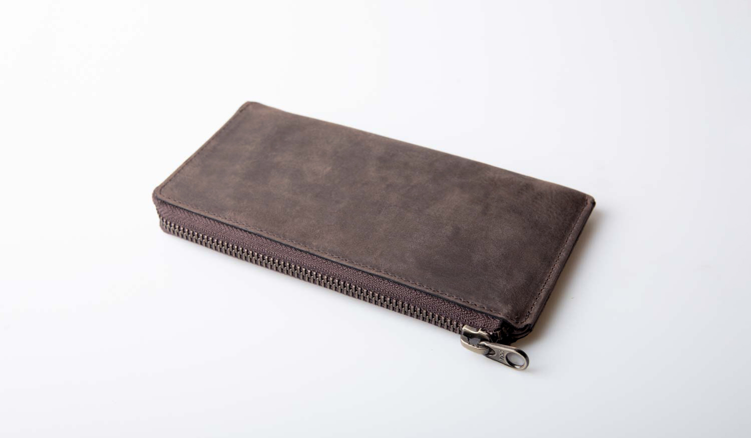 特にこだわったのがサイズ精度です。一万円札を折らずに美しく収めることを前提とし、ファスナータイプの長財布としては、紙幣との干渉を避けるほぼ最小のサイズまで設計を研ぎ澄ませています。