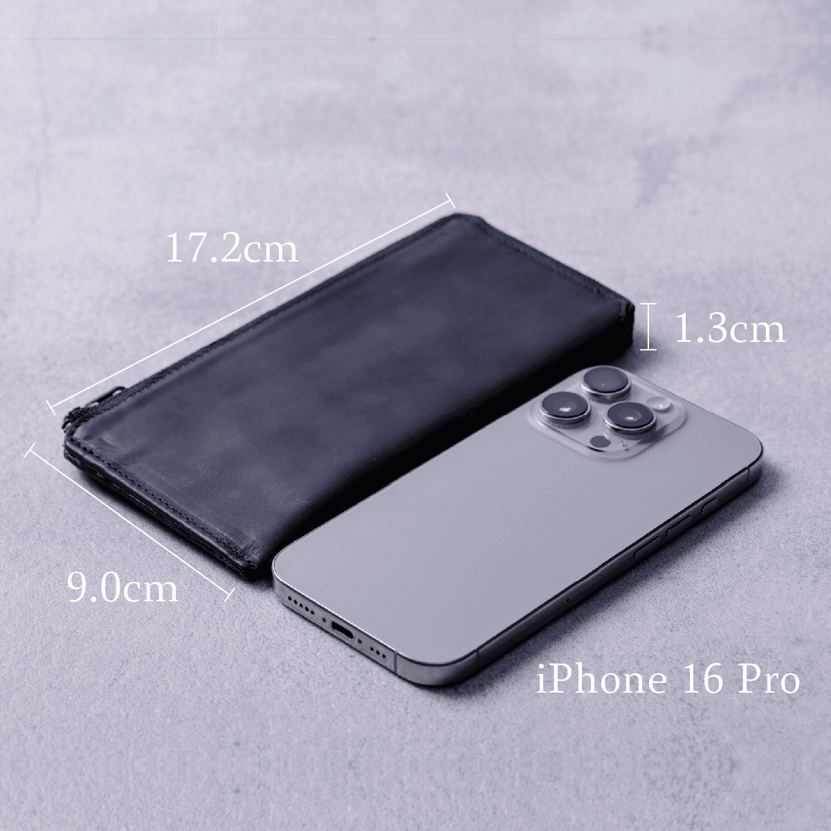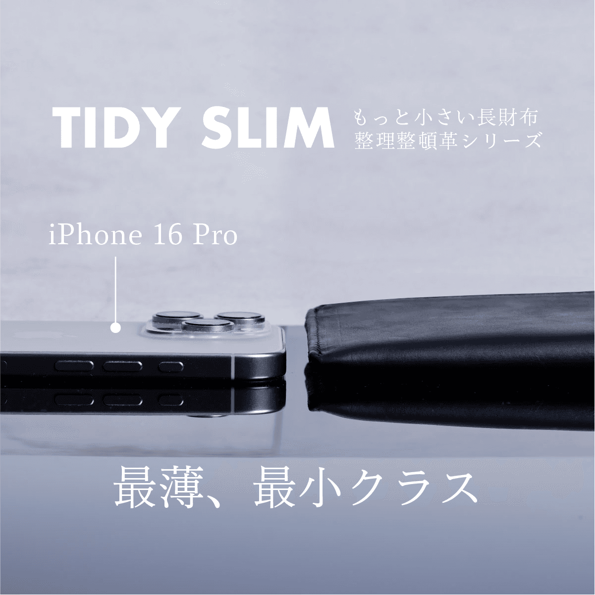 TIDY SLIMは、iPhone 16 Pro とほぼ同等のコンパクトさを実現しました。これは、あなたが毎日持ち運ぶスマートフォンと変わらないサイズ感で、長財布としての機能をすべて満たしていることを意味します。