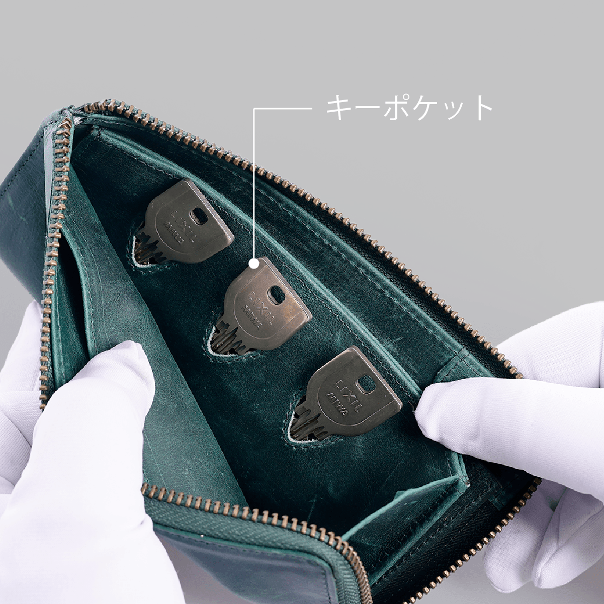 カードポケット9ヶ所 / サイドポケット1ヶ所 / フリーポケット1ヶ所 / 札仕切り1ヶ所 / キーポケット3ヶ所 / コインポケット1ヶ所 / ビルストッパー1ヶ所