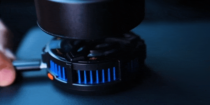 冷却装置は取り外して単独で使用可能。Type-C充電ケーブルを接続し、スマホを置くだけでワイヤレス充電が始まります。