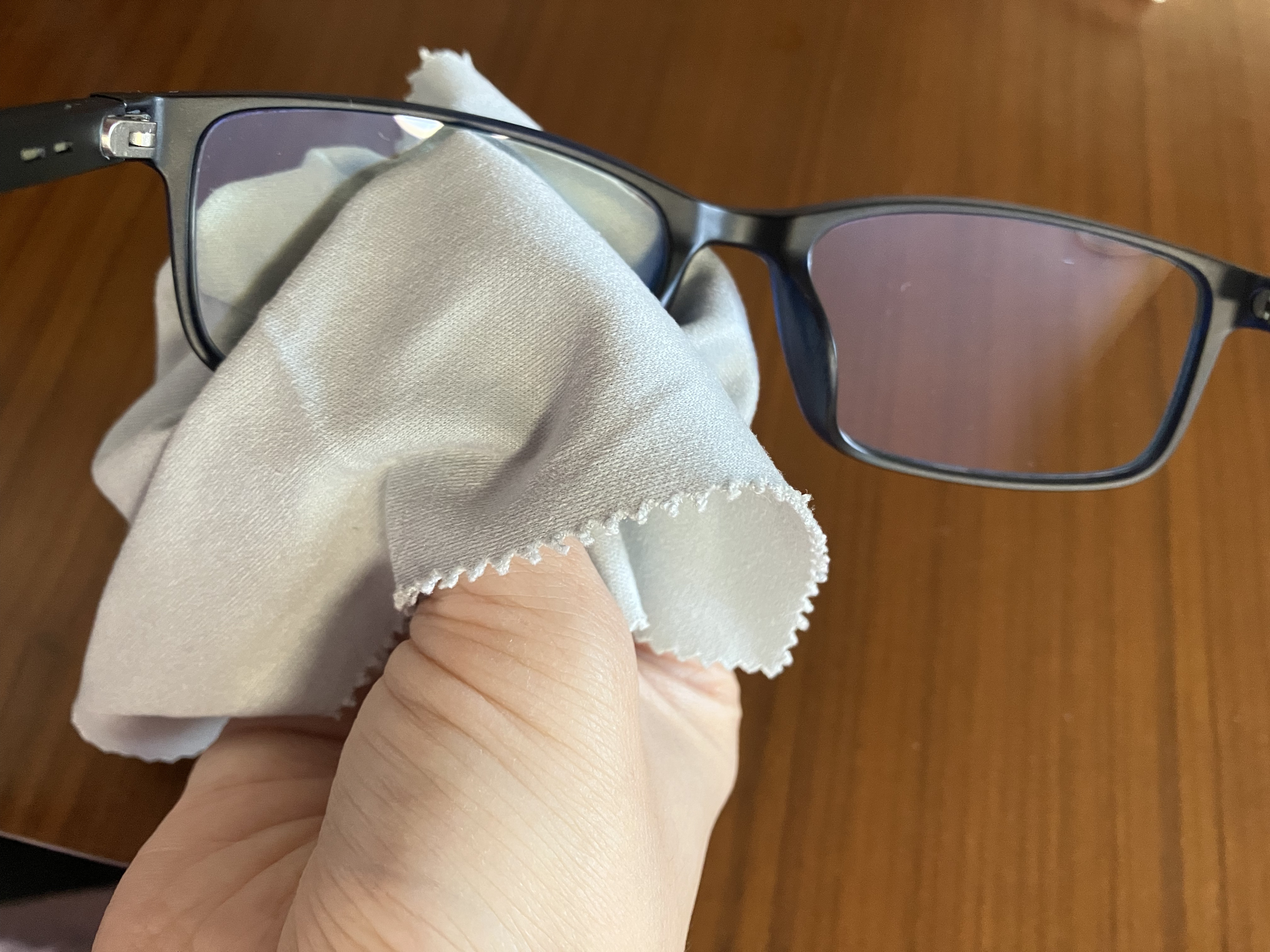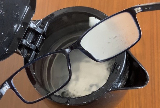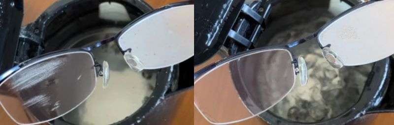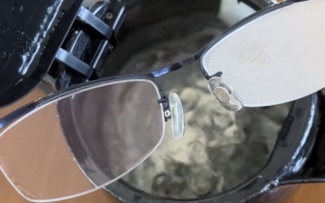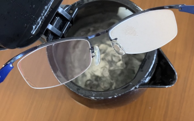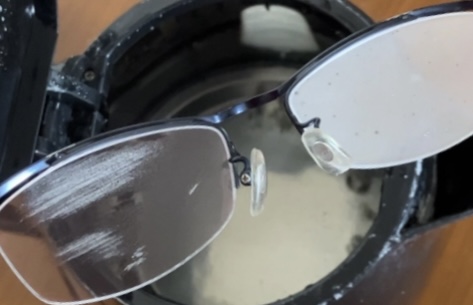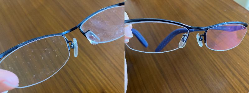 ※このメガネレンズは一見何も付いていないように見えますが、洗ってから試すと効果が安定しました。