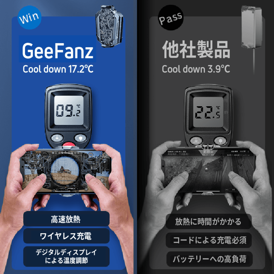 スマホ冷却ファン「GeeFanz」| 長時間のスマホ操作も快適に!発熱対策/超静音/スマホクーラー/ワイヤレス