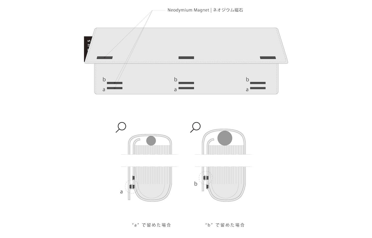 逆に、カードポケットを閉じると、お札ポケットの下部分の隙間が閉じて紙幣が固定される仕組みになっています。