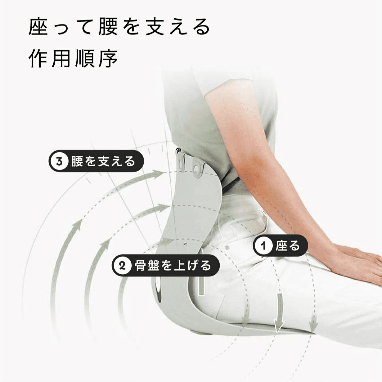 ・座ると自動で腰を持ち上げ、支える独自の"てこ式"サポート