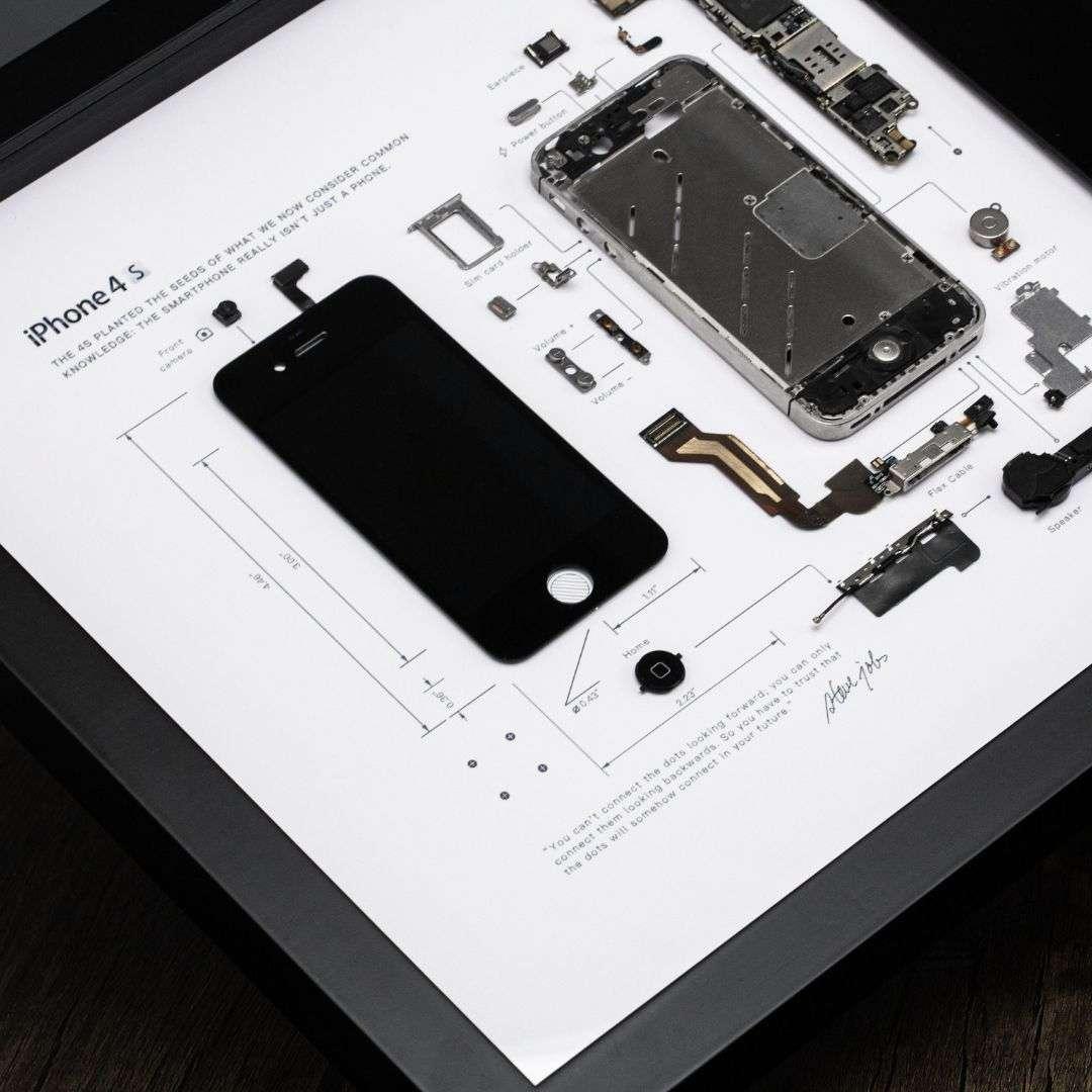 歴代の名ガジェットを、分解・額装することで称えたアート作品。
