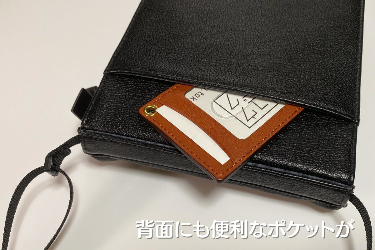 定期入れなど、受け取ったものやすぐに取り出したいものをサッと入れられる背面ポケット。使用頻度の高いアイテムの収納にも、便利なポケットとなっています。